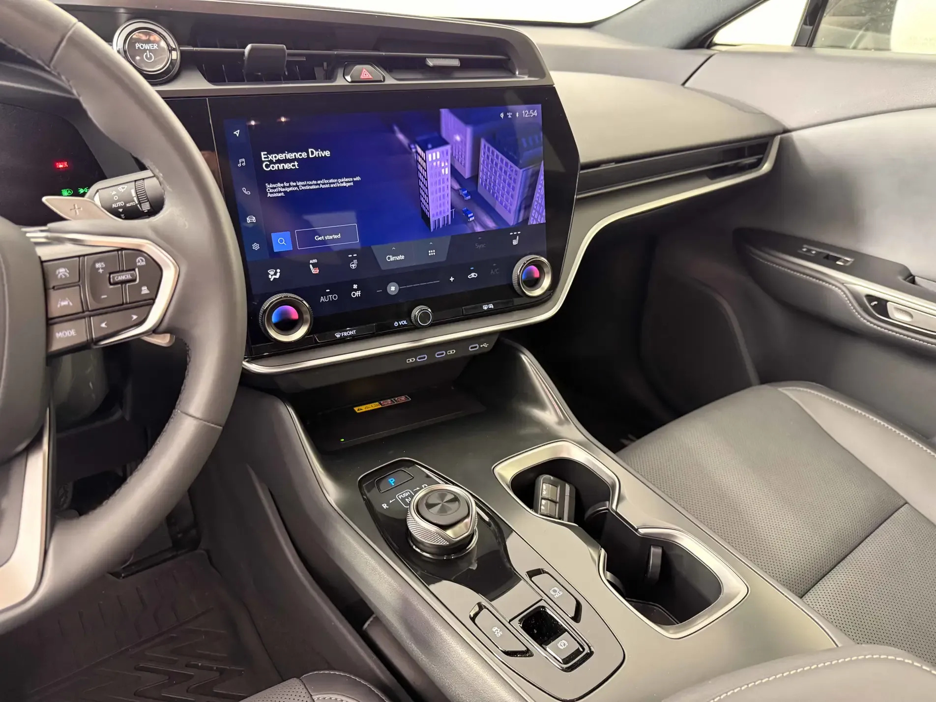 Inside, the RZ 450e Luxury is a haven of refinement. The cabin features premium leather upholstery, heated and ventilated seats, and a panoramic moonroof, all designed to offer the ultimate comfort. The 14-inch touchscreen integrates Lexus’ latest multimedia system, including Apple CarPlay, Android Auto, and navigation. The Lexus Safety System+ 3.0 ensures peace of mind with features like pre-collision system, lane departure alert, adaptive cruise control, and blind-spot monitoring, all standard on the RZ 450e Luxury.